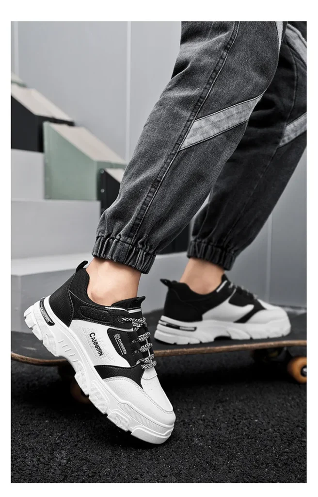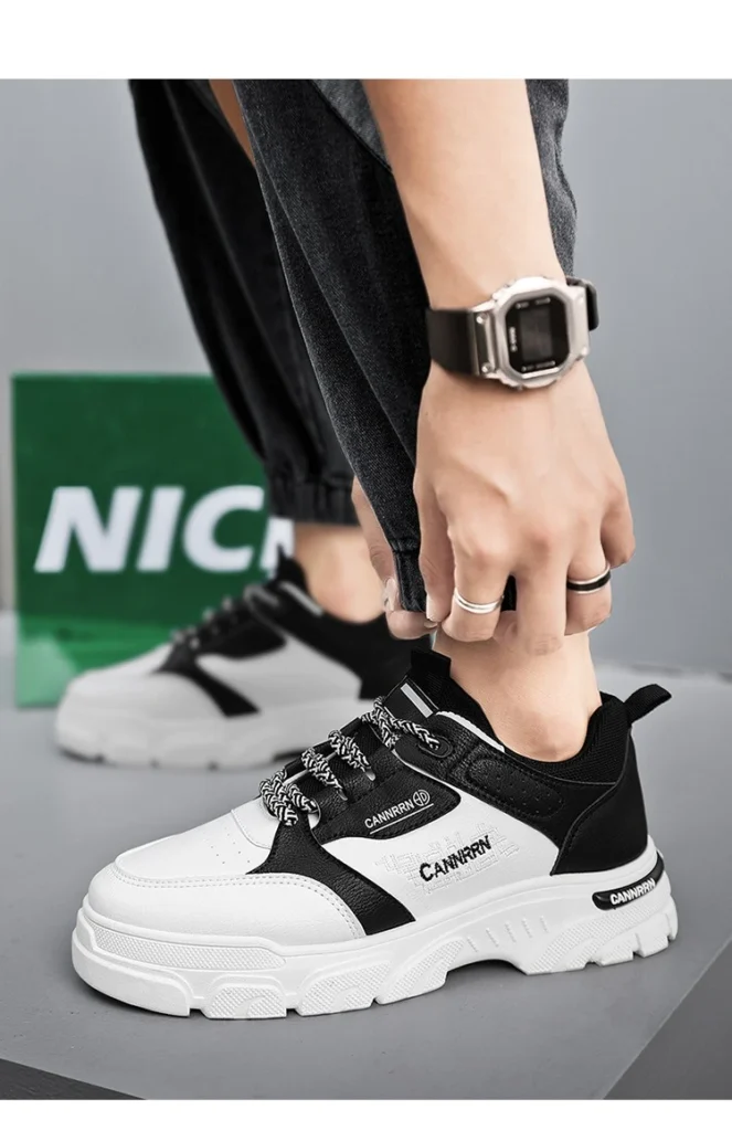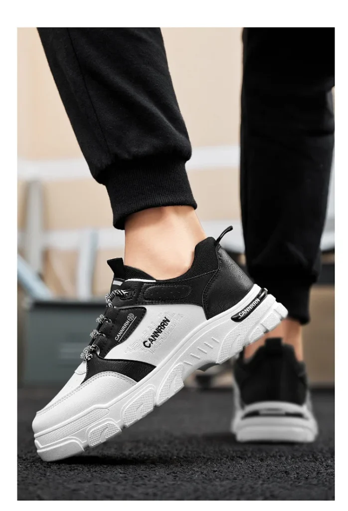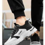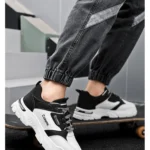 Elevate your streetwear game with these bold, breathable high-top sneakers, designed for ultimate comfort and statement-making style this autumn. They feature a striking, high-contrast black and white panel design, utilizing breathable mesh and durable leather-look overlays. Built on an exaggerated, sculpted chunky platform sole that provides superior shock absorption and a modern lift. The cushioned collar and patterned lace closure ensure a secure, personalized fit, making these the perfect shoe for extended city adventures and fashion-forward outings.