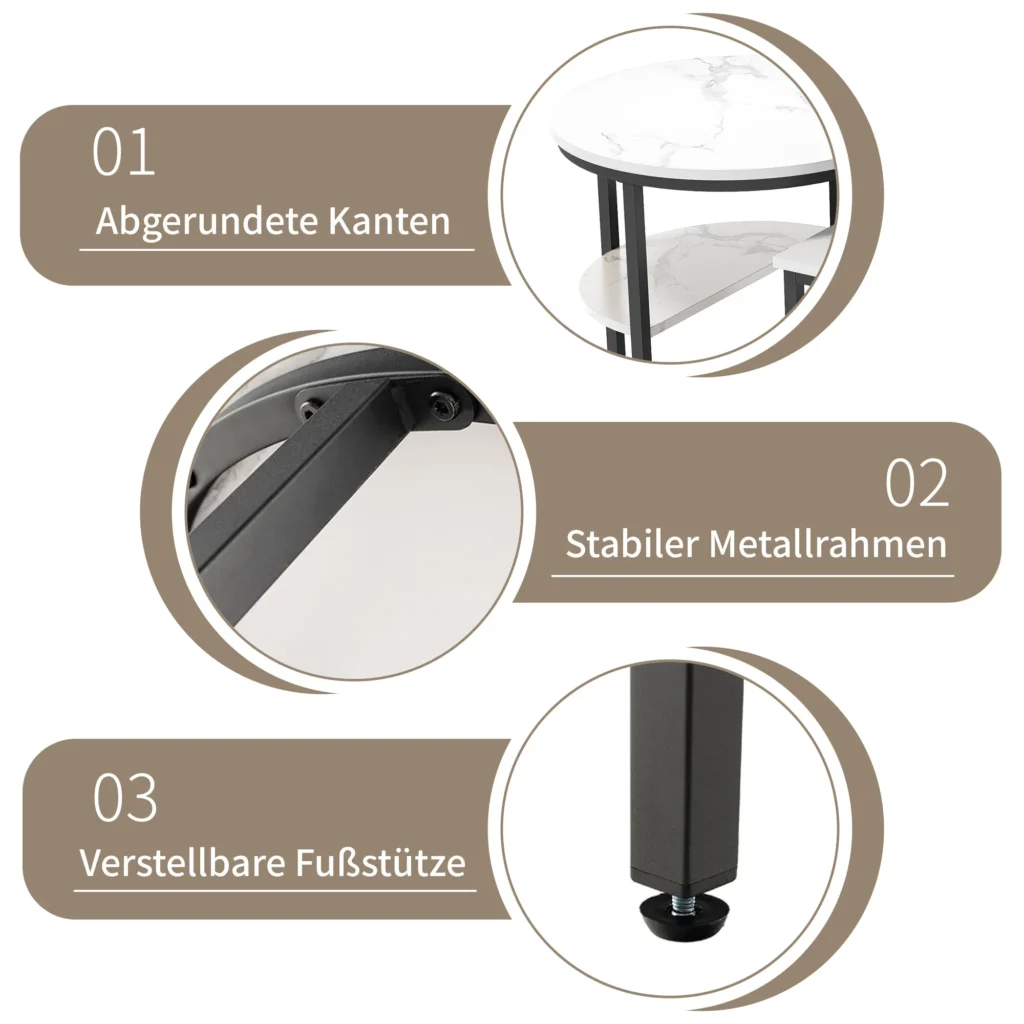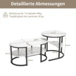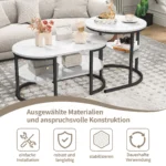 4.Robust metal frame: this set impresses with a sturdy metal frame that ensures long-lasting durability. The combination of metal and marble look gives the tables a modern yet robust look. The metal frame offers high load capacity and is suitable for daily use. This set is not only visually appealing, but also durable and resistant.