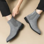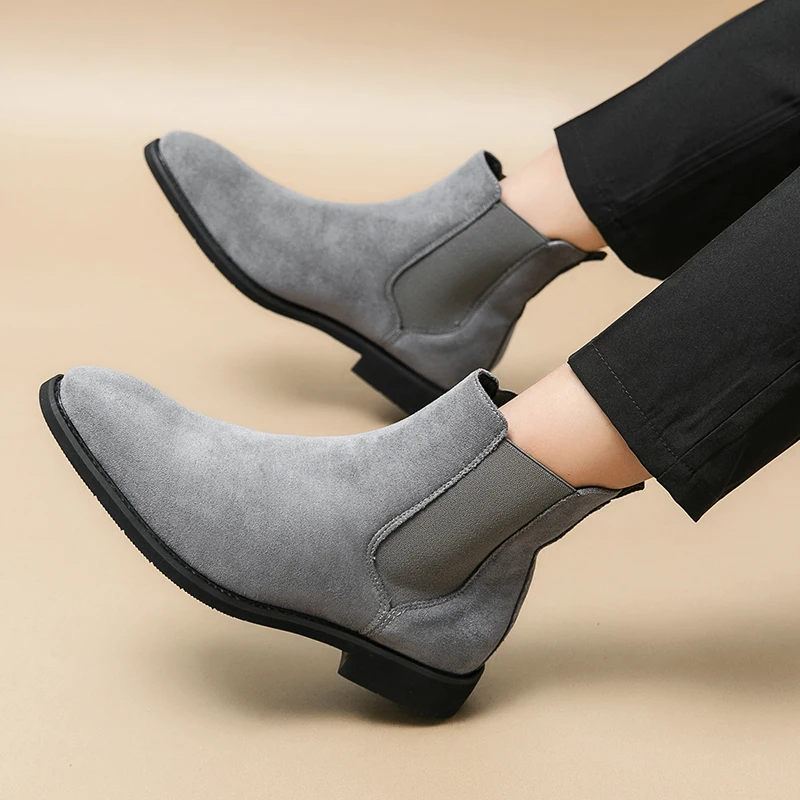 Redefine your smart-casual look with the timeless style of a classic Chelsea boot, crafted from premium soft suede for a luxurious touch and comfortable fit. Designed with wide elastic side panels and subtle pull tabs, these boots offer swift, hassle-free on-and-off wear while maintaining a sleek, tailored profile. The breathable material makes them a comfortable choice for year-round wear, while the low, stacked heel provides subtle lift and a confident stride. Perfect for dressing up a pair of jeans or complementing formal trousers with sophisticated ease.