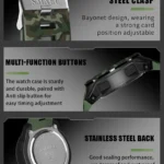 The large, dynamic face features a clear Digital LED display for immediate, precise timekeeping, complemented by a commanding, tactical aesthetic. With a 50M waterproof rating, this watch is built for action, offering an undeniable, high-impact presence and uncompromising durability on every operation. It is the ultimate choice for the modern man who demands a commanding, functional, and resilient timepiece.