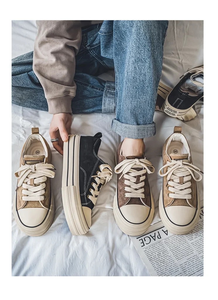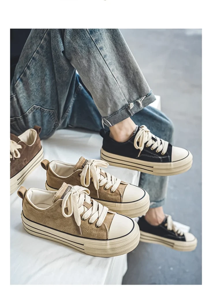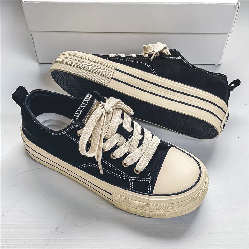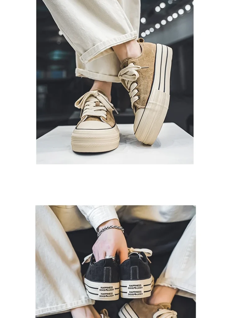 Engineered for foundational style and all-day comfort, these Classic Black Men’s Canvas Shoes are an essential piece of urban footwear. This design successfully merges the timeless low-top sneaker silhouette with a modern Platform sole, delivering a subtle lift and enhanced shock absorption.