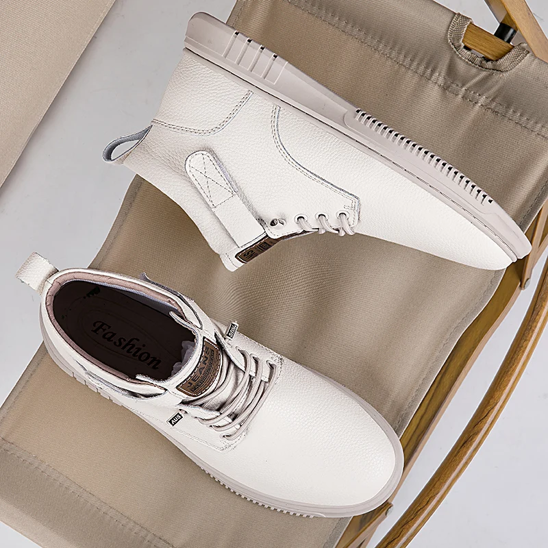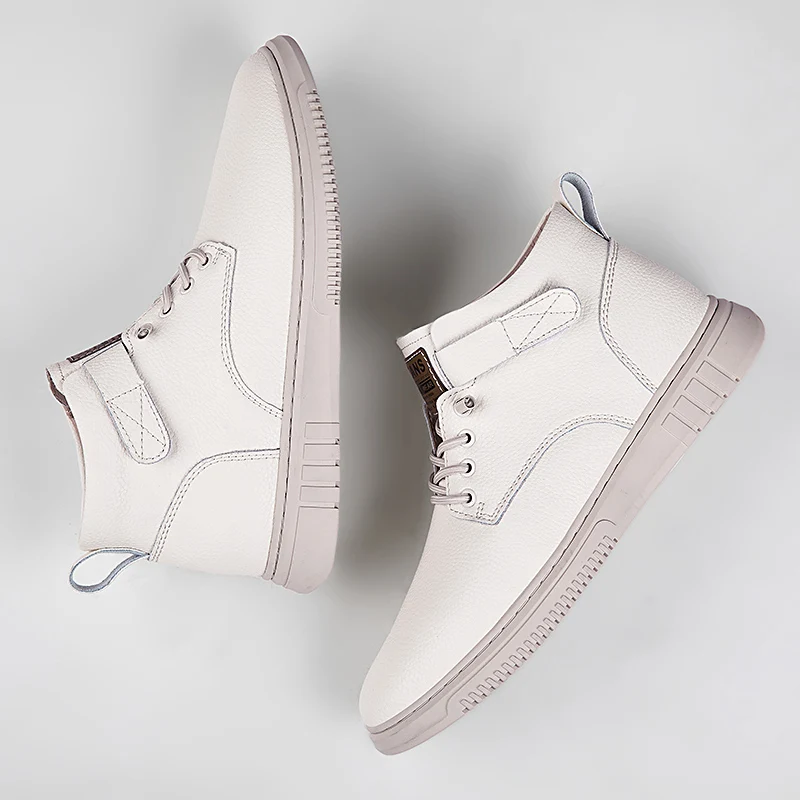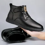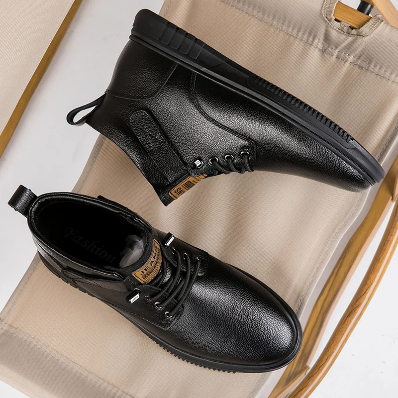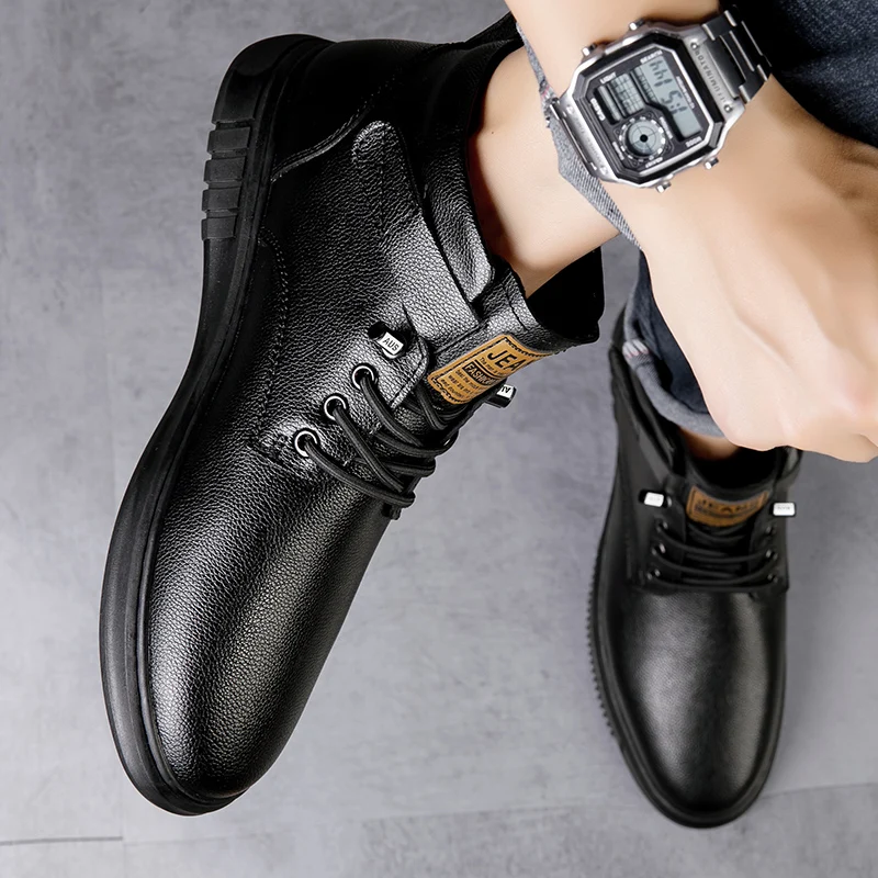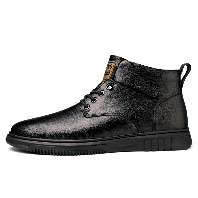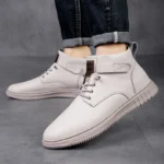 Achieve a polished yet relaxed look with this versatile casual ankle boot, crafted from a premium light-textured leather-look material. The design features a low-profile silhouette with a subtle lace-up front and a small, functional hook-and-loop strap accent near the ankle for a secure fit and added detail. Built on a clean, low-profile rubber sole with a defined tread, this boot offers comfortable all-day wear and steady traction. Its simple, elegant design makes it an excellent choice for smart-casual outings, seamlessly bridging the gap between a dress shoe and an everyday sneaker.