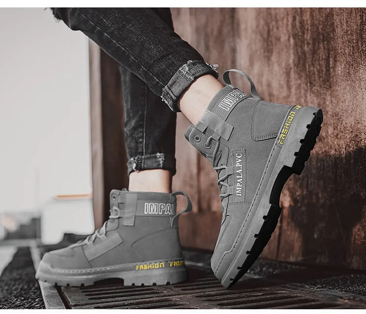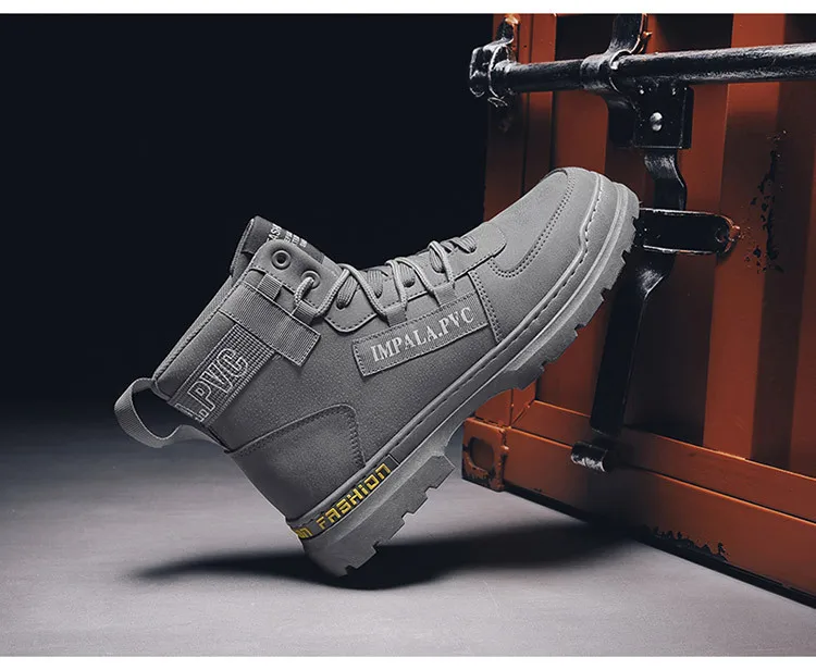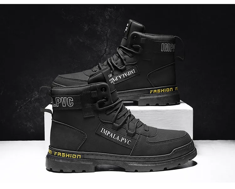 Engineered for the urban jungle, this high-top combat boot merges military utility with modern streetwear appeal. Constructed from durable, heavy-duty material, it features an elaborate lace-up design, a robust rubber sole with aggressive treading, and a secure ankle strap for added stability. Distinctive textual accents, including “IMPALA.PVC” on the side and “FASHION” detailing, give this boot an undeniable, high-impact aesthetic. It’s the ultimate choice for those who demand a commanding presence and uncompromising grip in their everyday footwear.