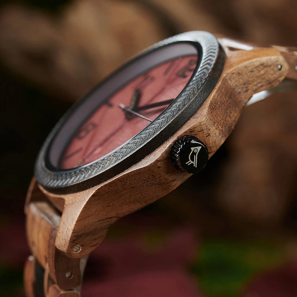 Water Resistance: NOT WATERPROOF. Avoid swimming or showering while wearing the watch; the natural wood will react poorly to prolonged water exposure.