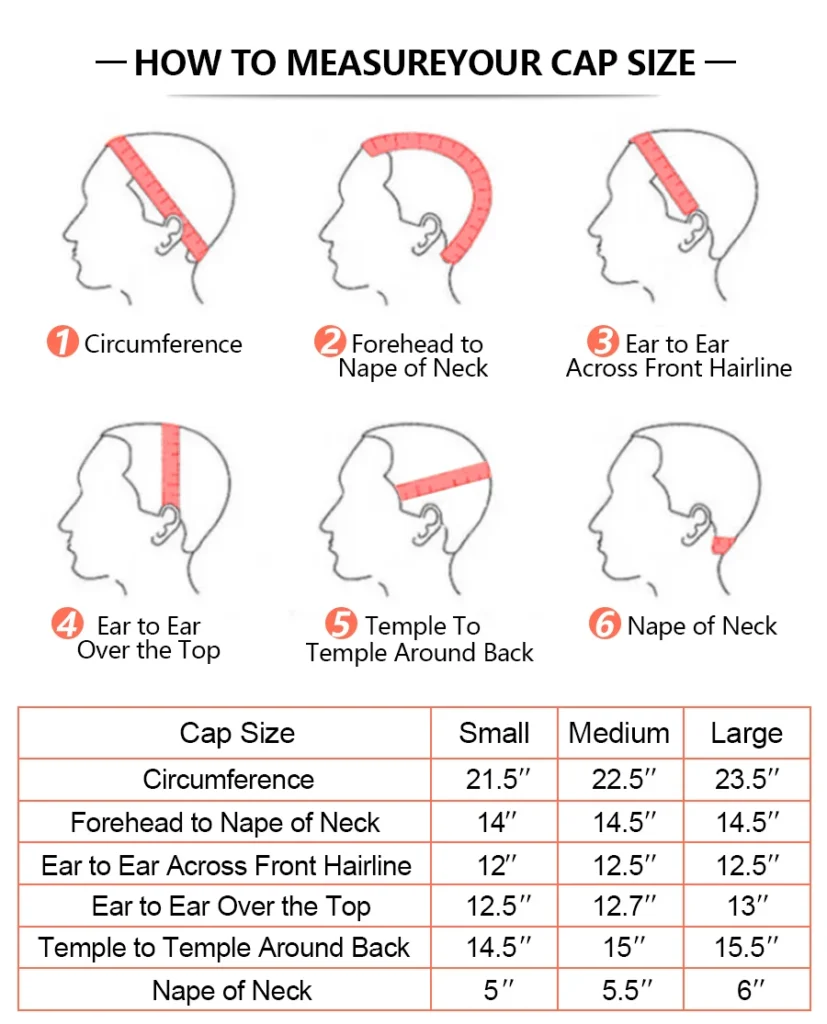 Cap Size: 22-22.5in Average size with adjustable straps.